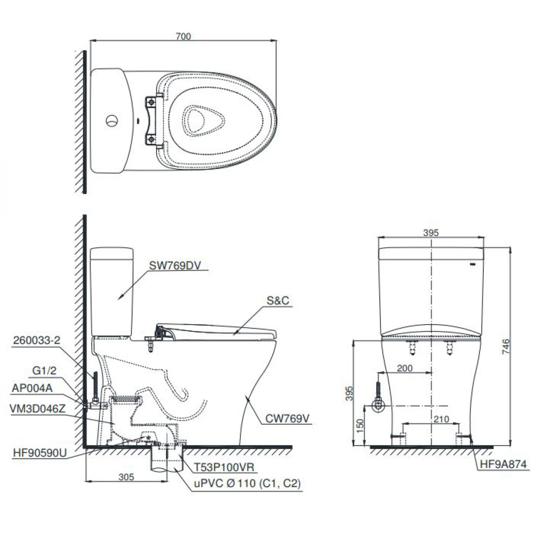 Hãy là người đầu tiên nhận xét “Bàn cầu TOTO CS769DRE2#XW 2 khối nắp rửa cơ TCW07S”