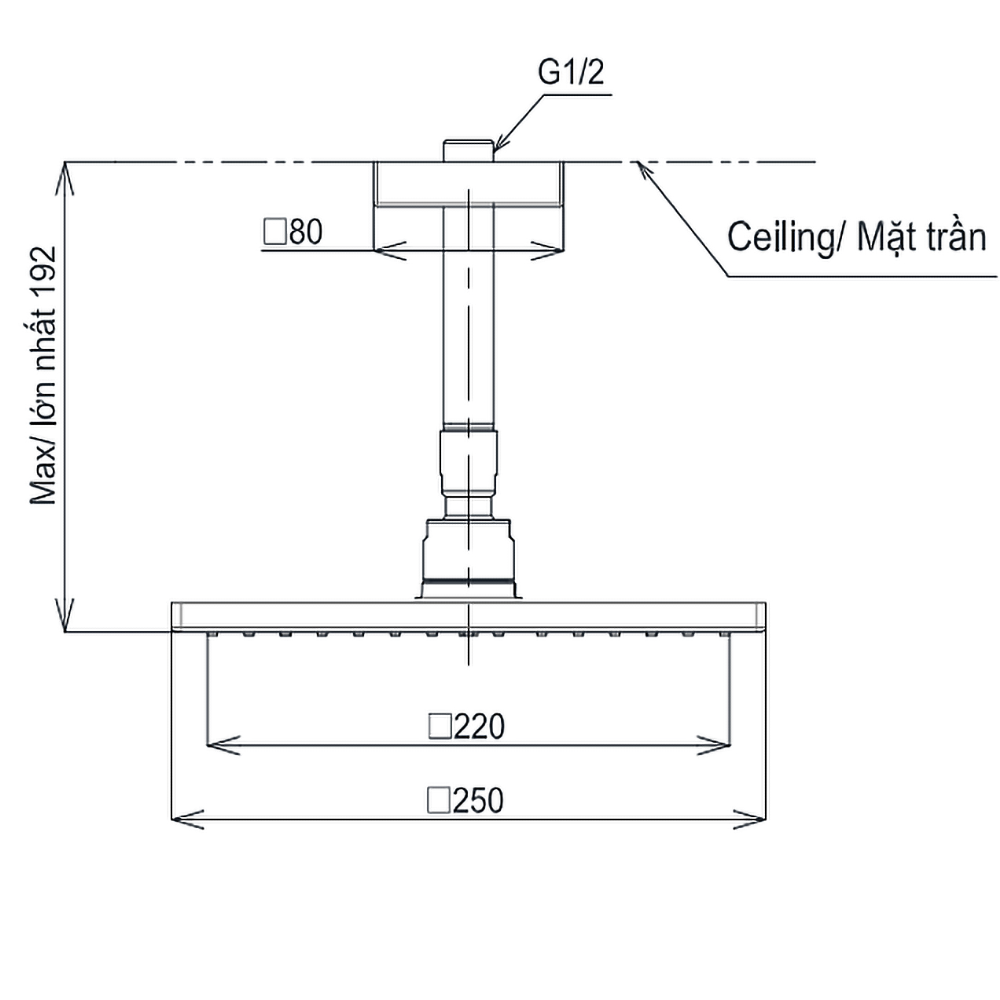 Bát sen gắn trần TOTO URBANIQUE DB144-1CR vuông 220mm