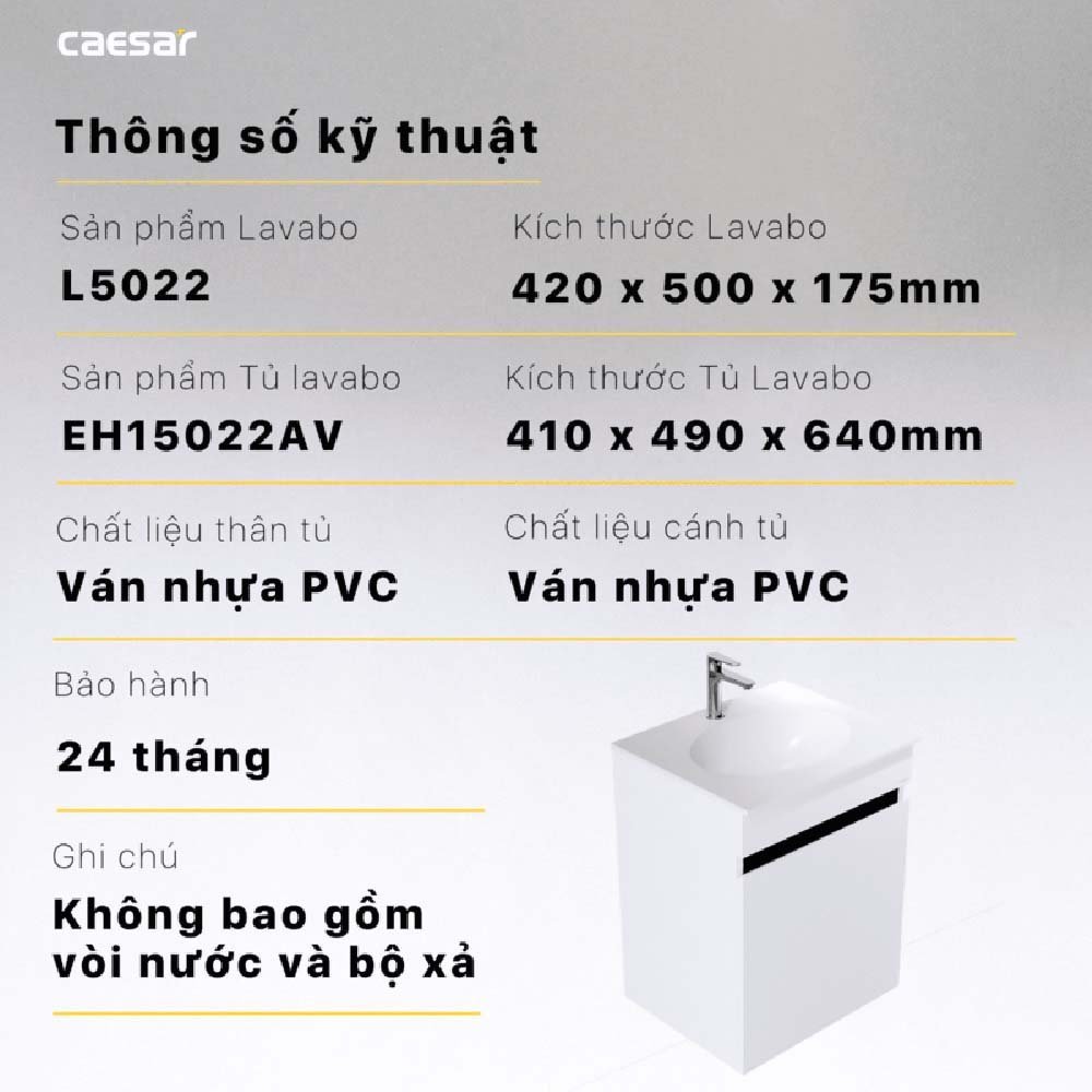 Bộ tủ lavabo CAESAR L5022 + EH15022AV treo tường