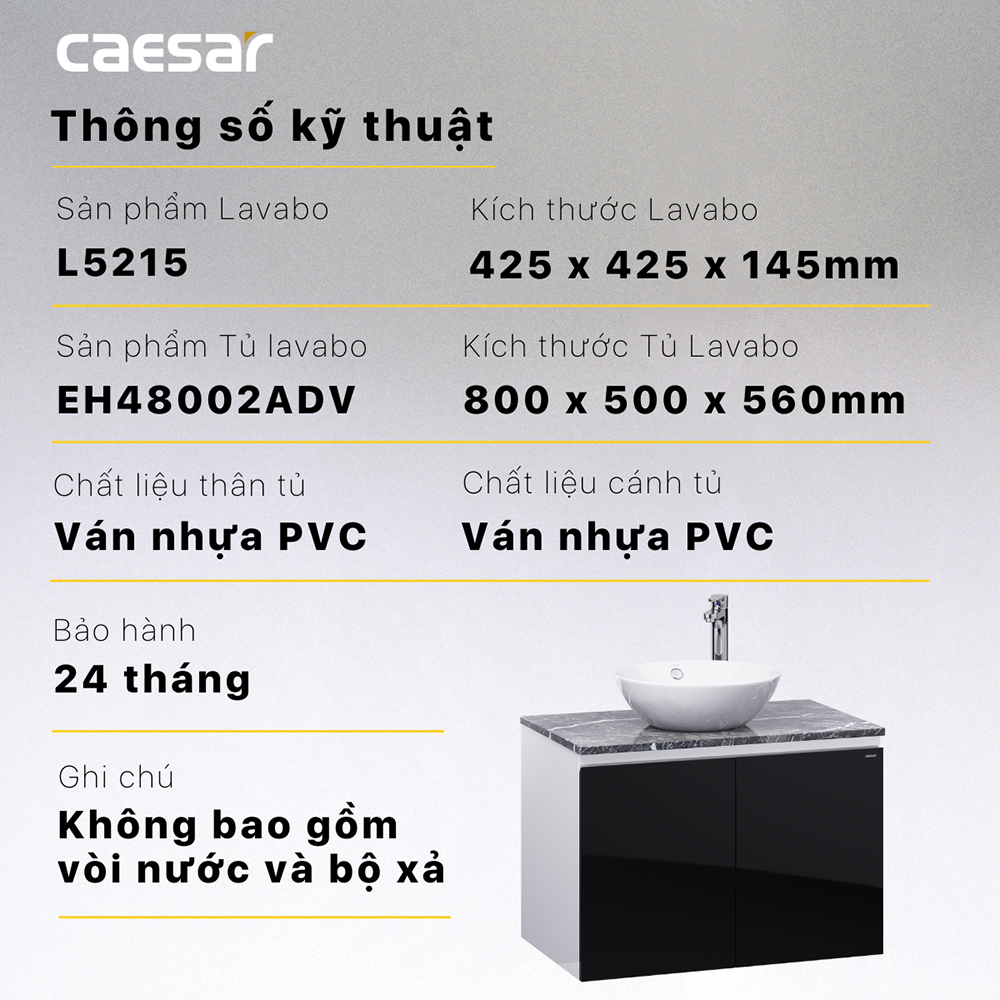 Bộ tủ lavabo CAESAR L5215 + EH48002ADV treo tường