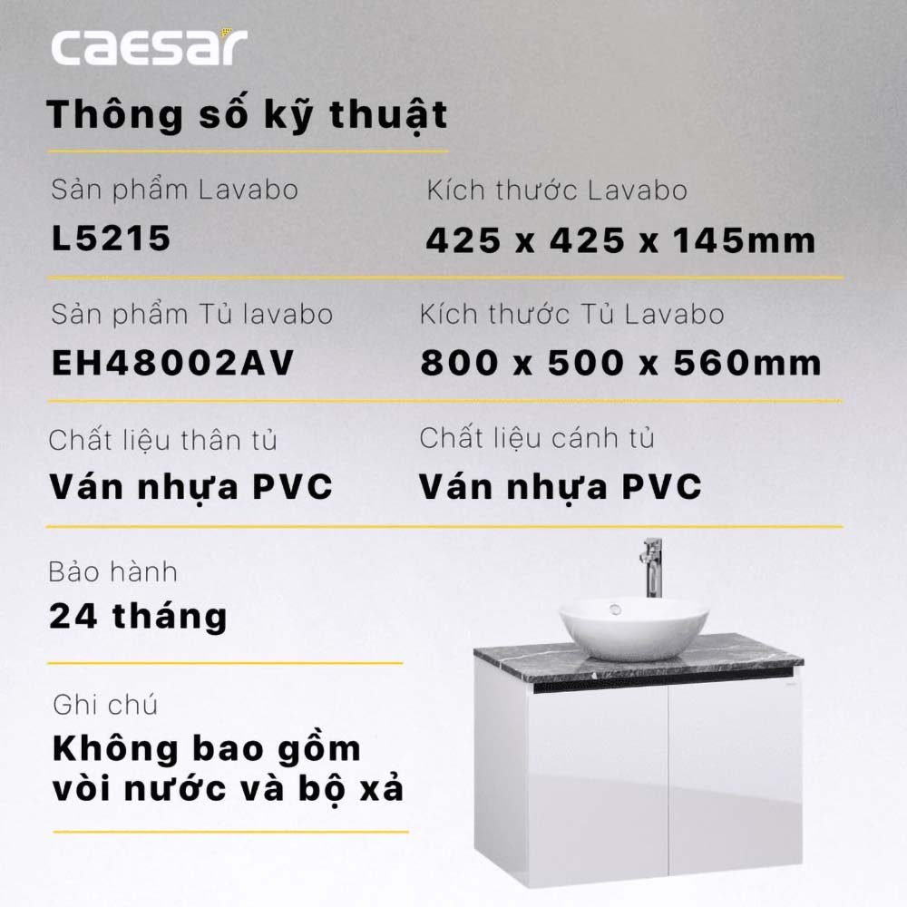 Bộ tủ lavabo CAESAR L5215 + EH48002AV treo tường