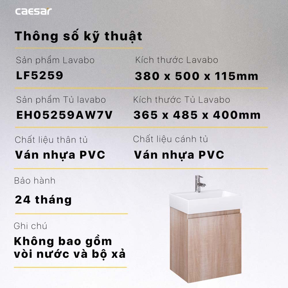 Bộ tủ lavabo CAESAR LF5259 + EH05259AV treo tường
