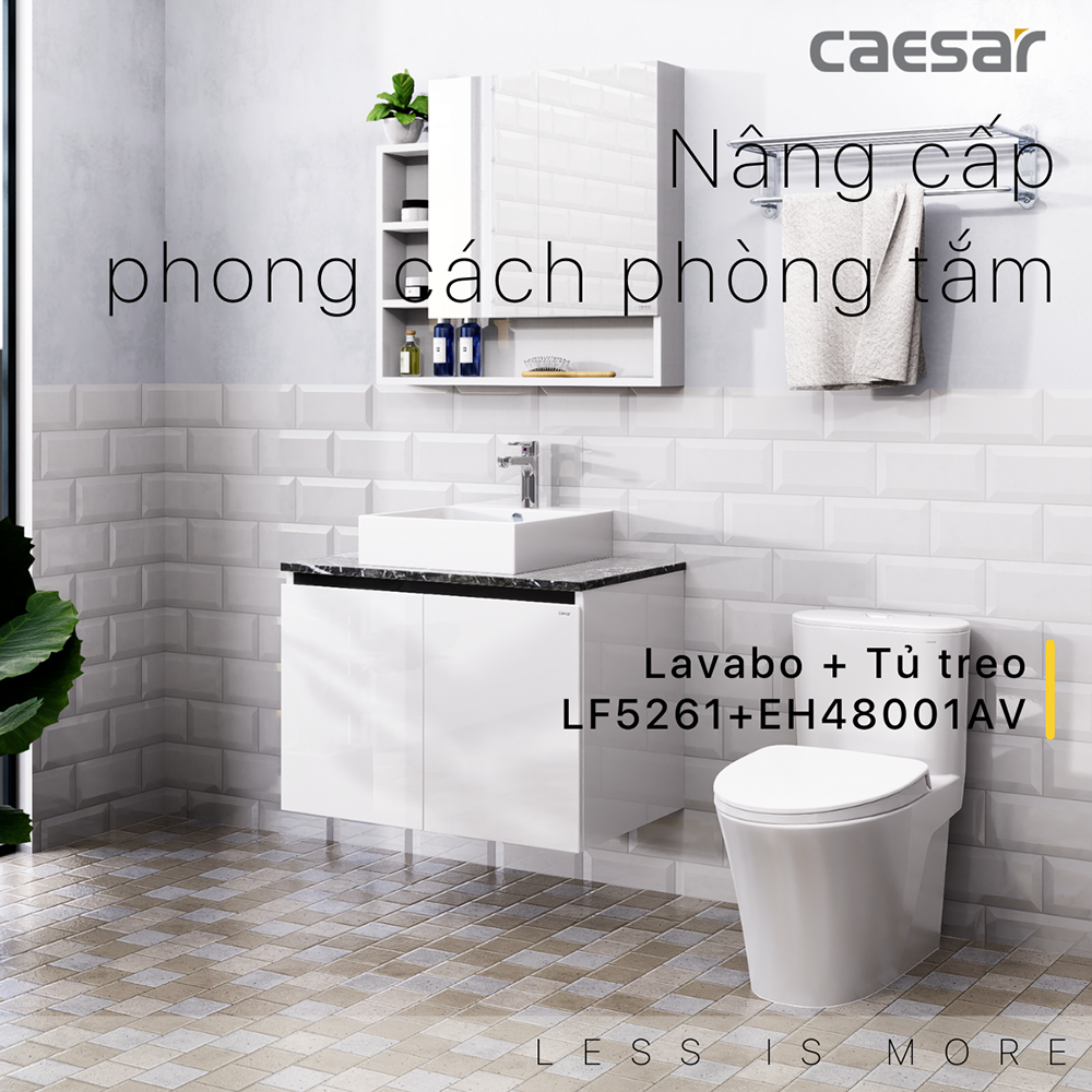Bộ tủ lavabo CAESAR LF5261 + EH48001AWV treo tường