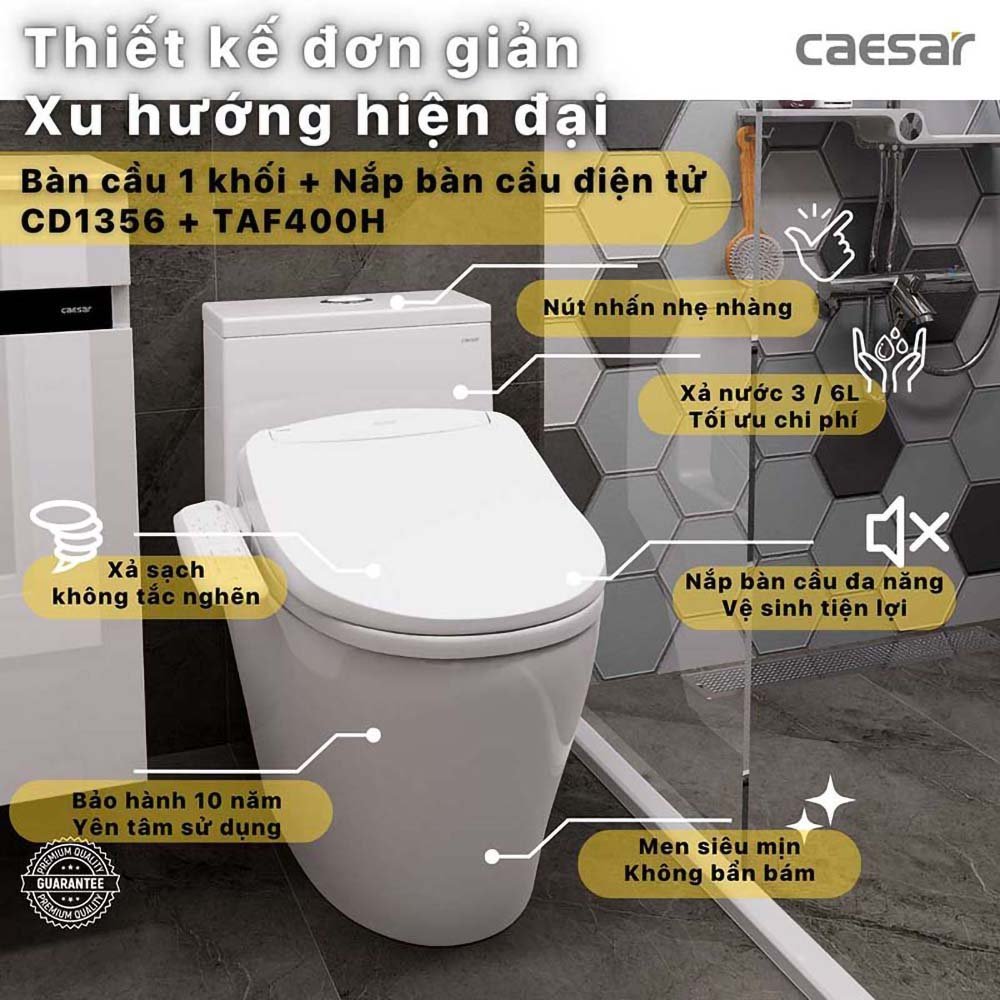 Bồn cầu CAESAR C1356F/ TAF400H (CD1356) 1 khối nắp điện tử TAF400H