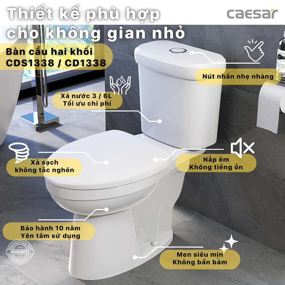 Bồn cầu CAESAR CDS1338 2 khối nắp êm MS220