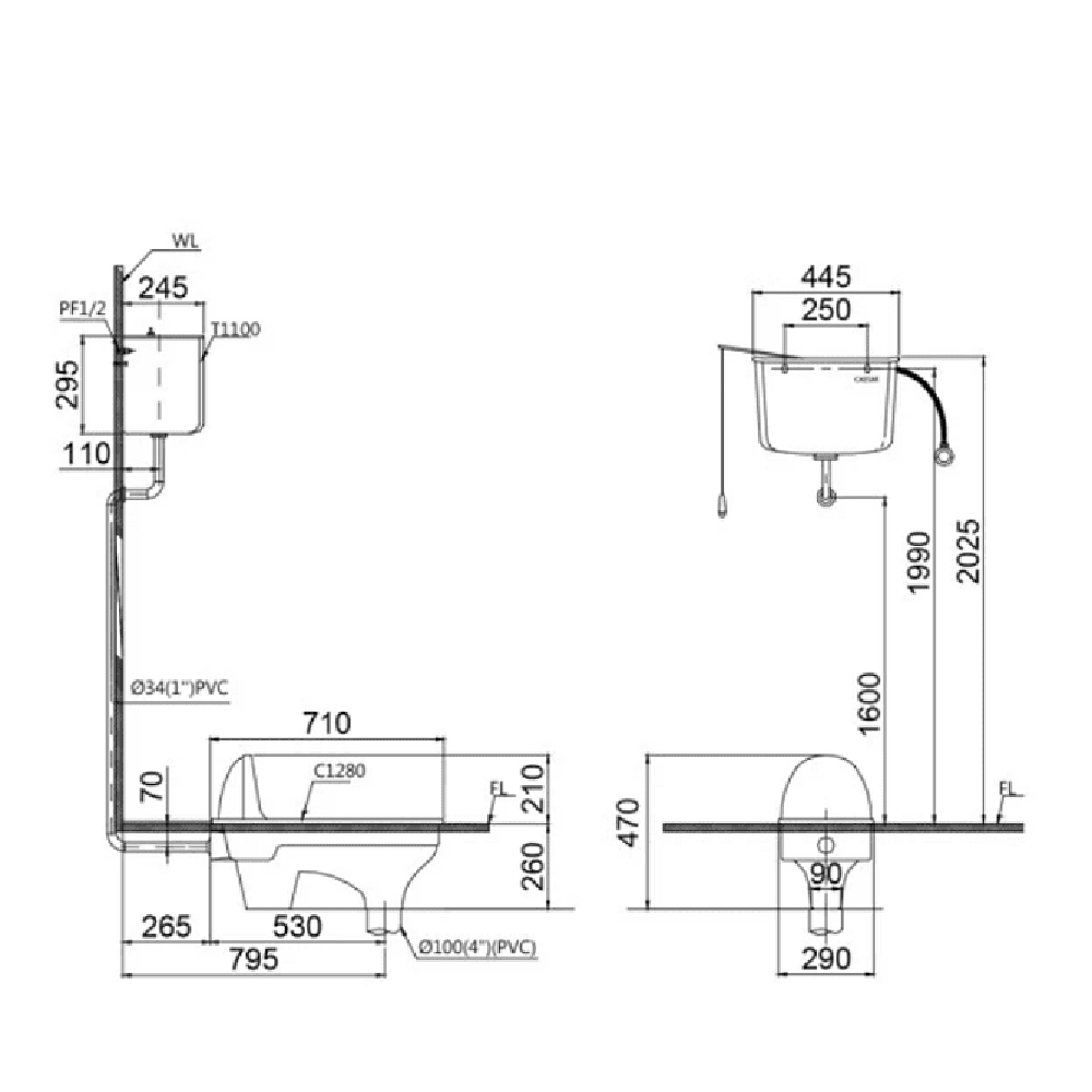 Hãy là người đầu tiên nhận xét “Bồn cầu CAESAR CS1280 dạng xổm, thùng nước T1100” Hủy