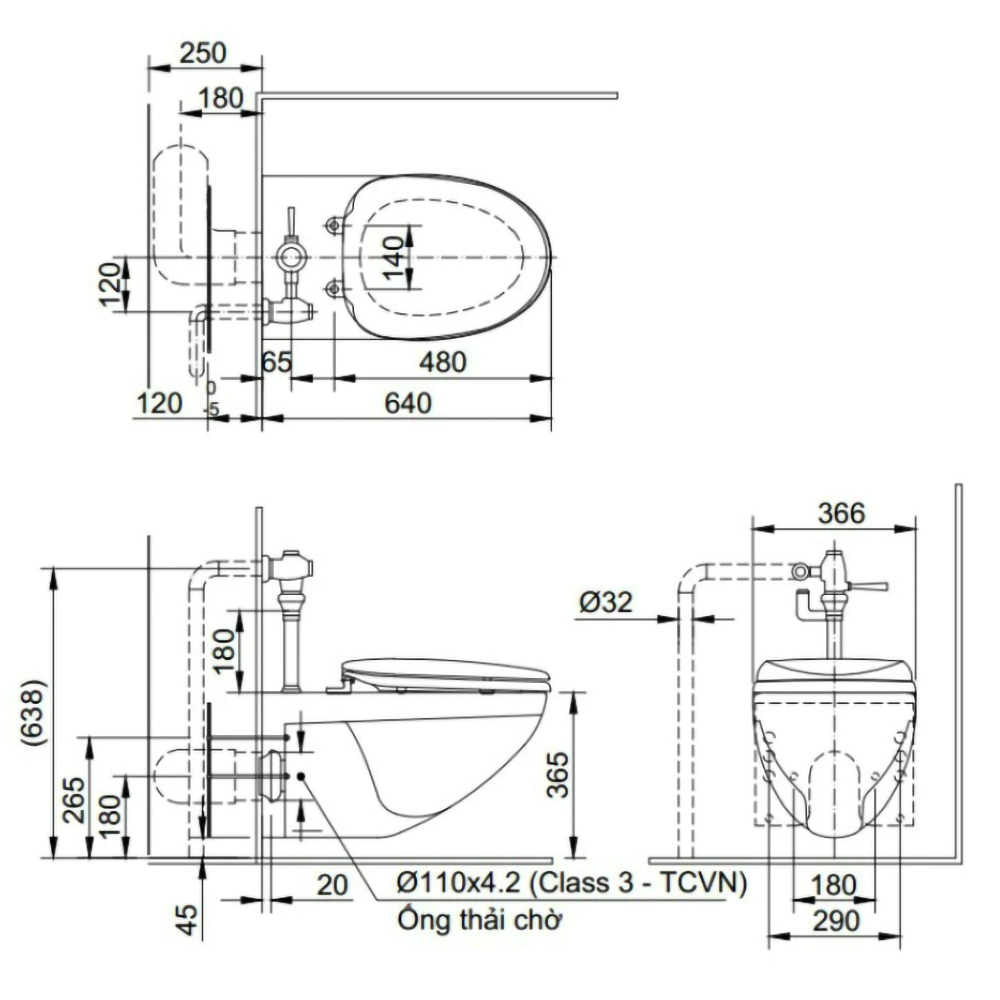 ♦ Hệ thống xả: xả siphon tiết kiệm nước (6.5/ 3L)