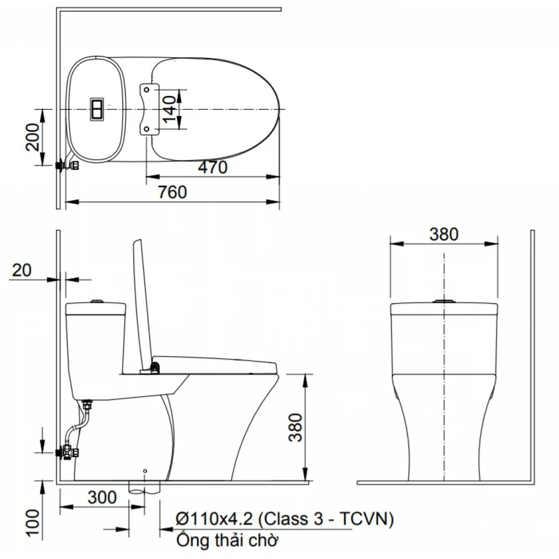 ♦ Hệ thống xả: xả siphon 4.5/ 6.5L