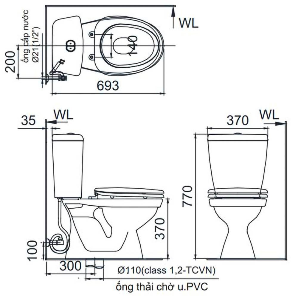 ♦ Hệ thống xả: xả siphon tiết kiệm nước