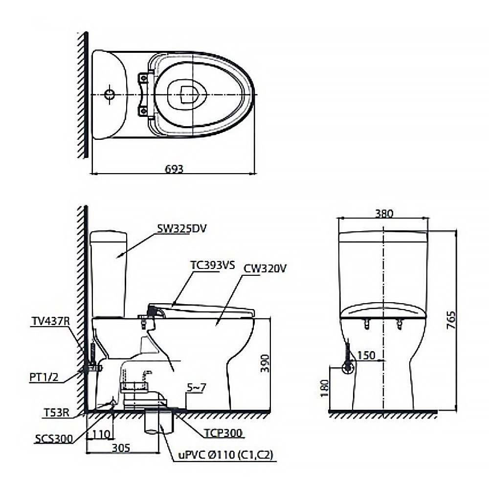 Hãy là người đầu tiên nhận xét “Bồn cầu TOTO CS325DRW16#W 2 khối nắp điện tử TCF23410AAA” Hủy