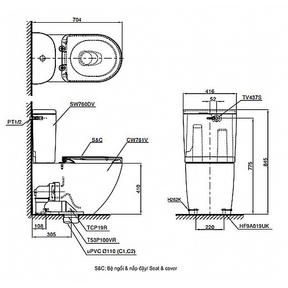 Hãy là người đầu tiên nhận xét “Bồn cầu TOTO CS761DE5#XW 2 khối nắp rửa cơ TCW09SK1” Hủy