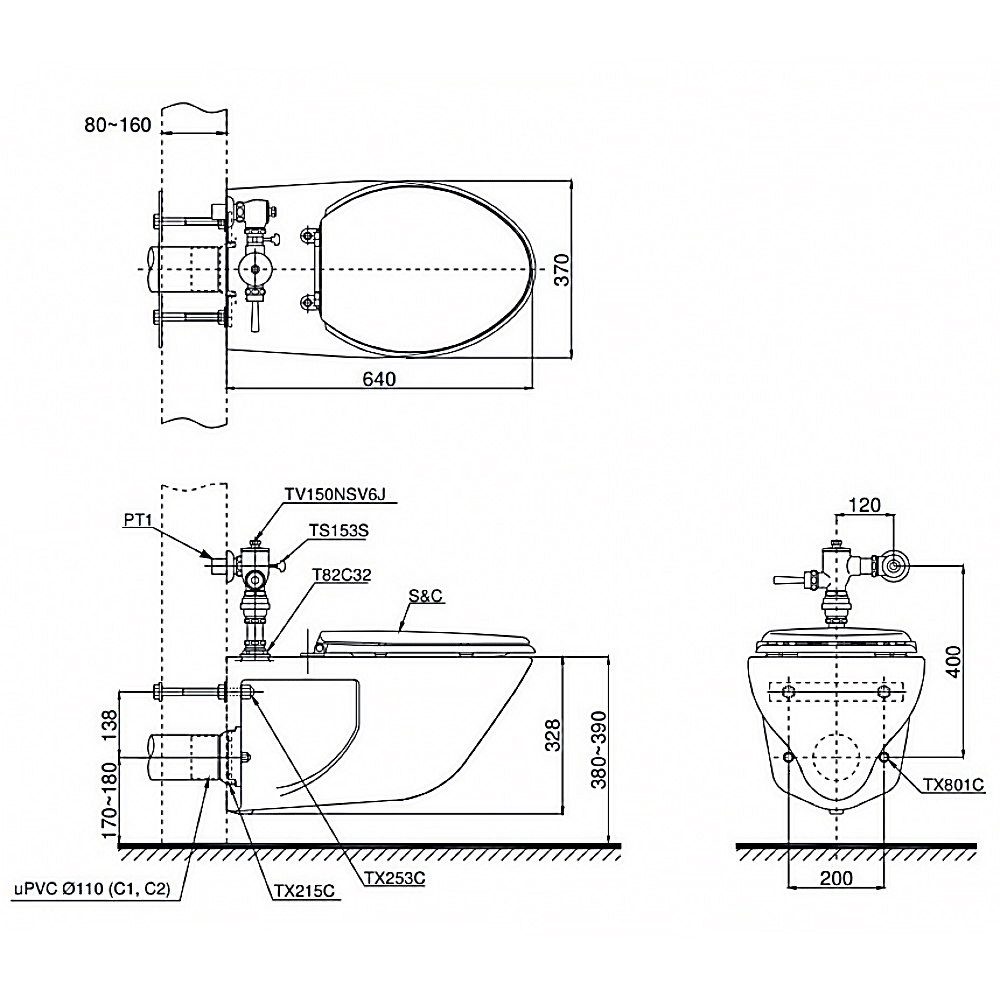 Bồn cầu TOTO CW550#XW/ TC393VS#W/ HTS153S/ TV150NSV6J treo tường (thoát ngang), nắp êm TC393VS – Sự hoàn hảo trong từng chi tiết