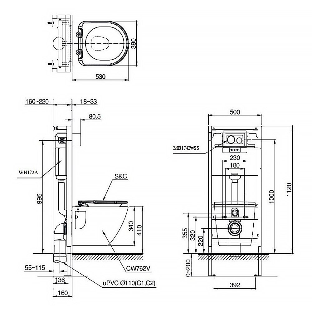 Hãy là người đầu tiên nhận xét “Bồn cầu TOTO CW762#XW/ TC384CVK#W/ WH172A/ MB176G#WH treo tường nắp êm TC384CVK”