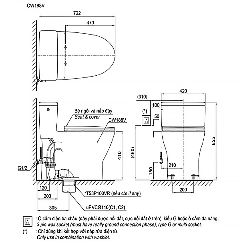 Hãy là người đầu tiên nhận xét “Bồn cầu TOTO MS188VKE4#XW/ T53P100VR 1 khối nắp rửa cơ TCW1211A”