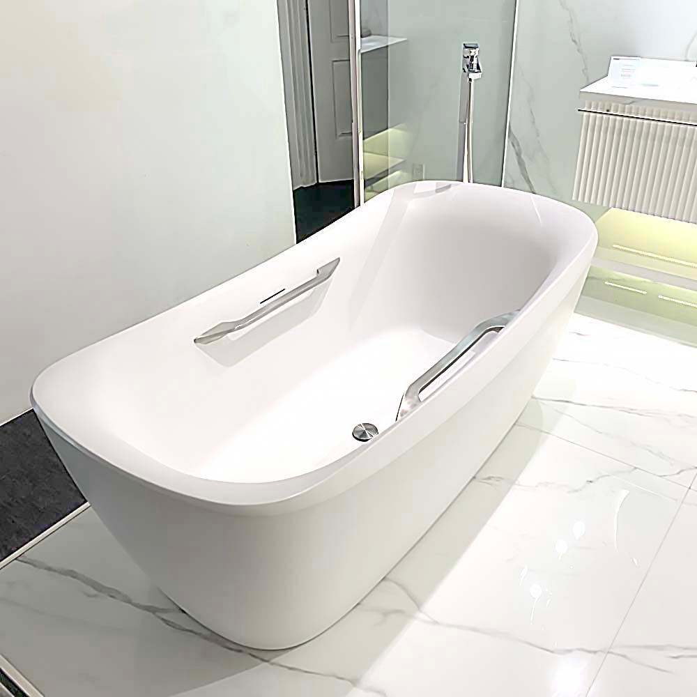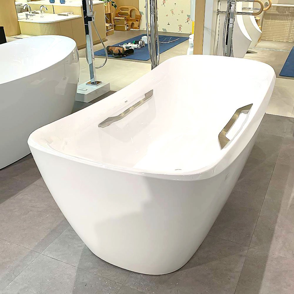 Bồn tắm TOTO PJY1744WHPWEN#MW/ TVBF412 đá cẩm thạch đặt sàn, có tay vịn, kèm ống thải TVBF412