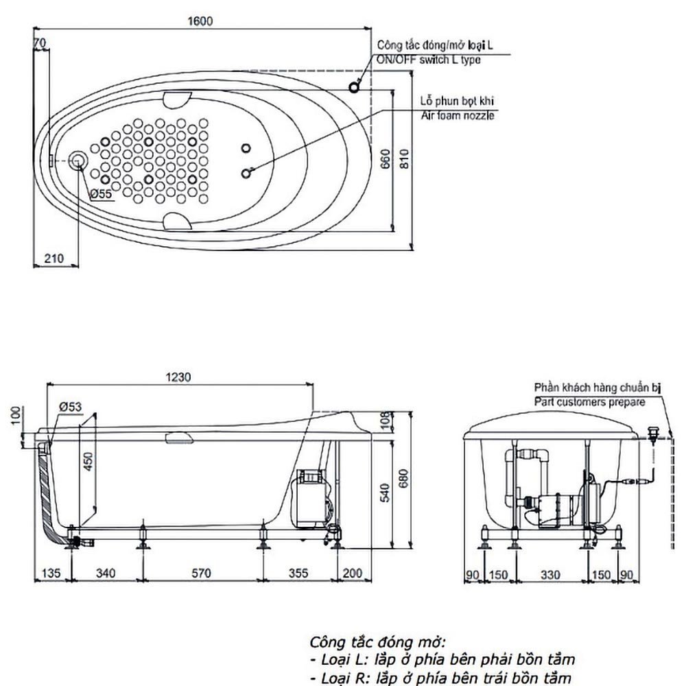 ♦ Kích thước: 1600 x 810 x 630 mm