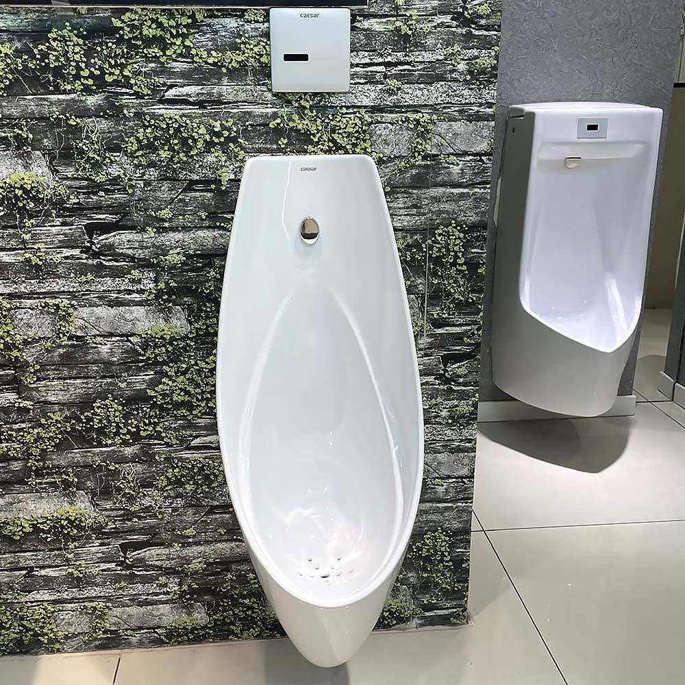 Bồn tiểu nam CAESAR U0296 đặt sàn, kèm van xả cảm ứng A640, thoát sàn