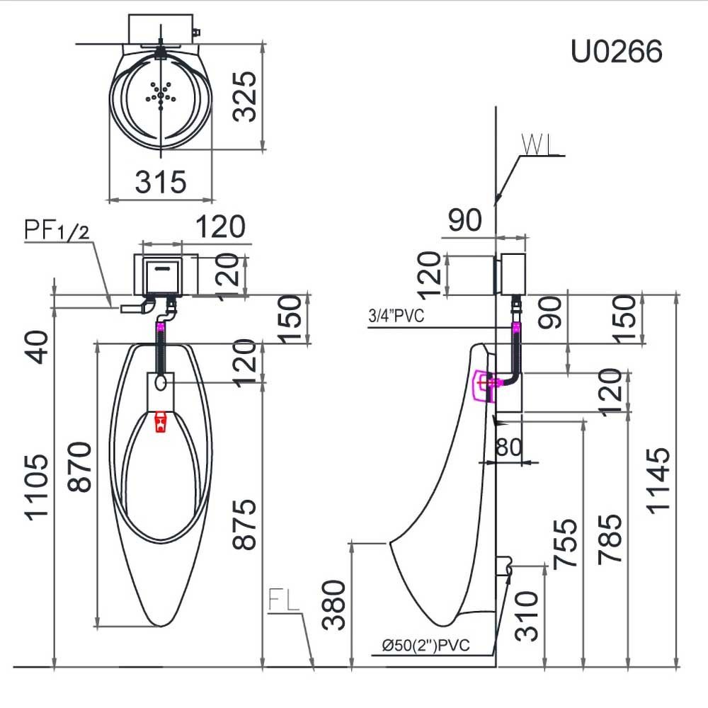 ♦ Sản phẩm không bao gồm van xả bồn tiểu