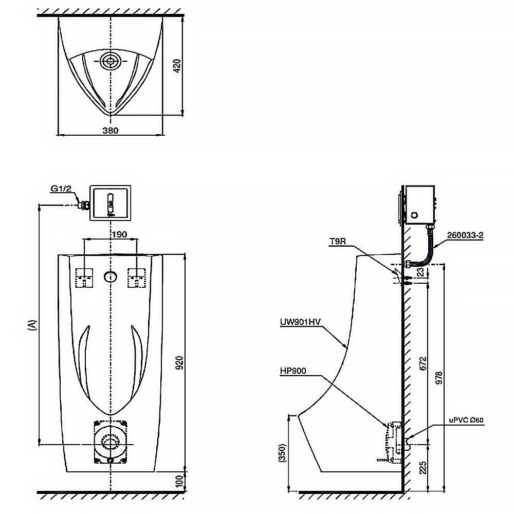 Bồn tiểu nam TOTO UT901H#XW treo tường 0.5L sở hữu thiết kế nhỏ gọn, tiện dụng với vách ngăn tạo không gian riêng tư; chế độ xả trải đều mạnh mẽ làm sạch hoàn toàn lòng bồn cầu