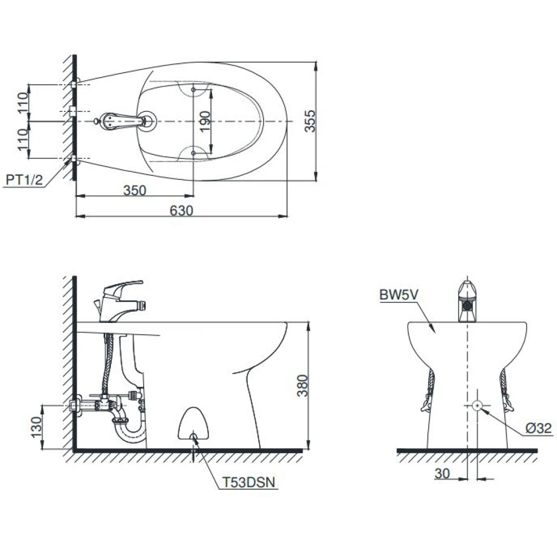 Bồn tiểu nữ TOTO BT5#W đặt sàn