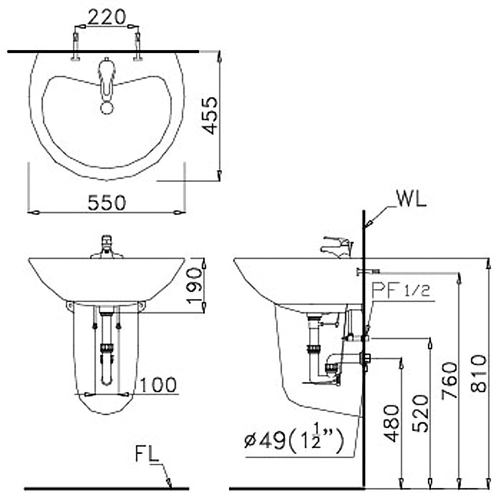 ♦ Kết hợp với lavabo Caesar : L2150, L2152, L2220, L2365