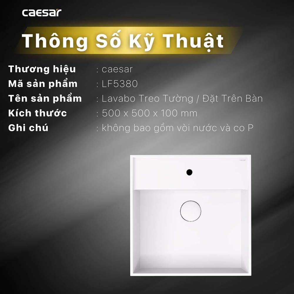 Chậu rửa mặt lavabo CAESAR LF5380 đặt bàn (bao gồm ống xả và nắp sứ)