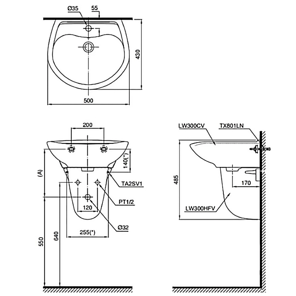 Chậu rửa mặt lavabo TOTO LT300C#W treo tường