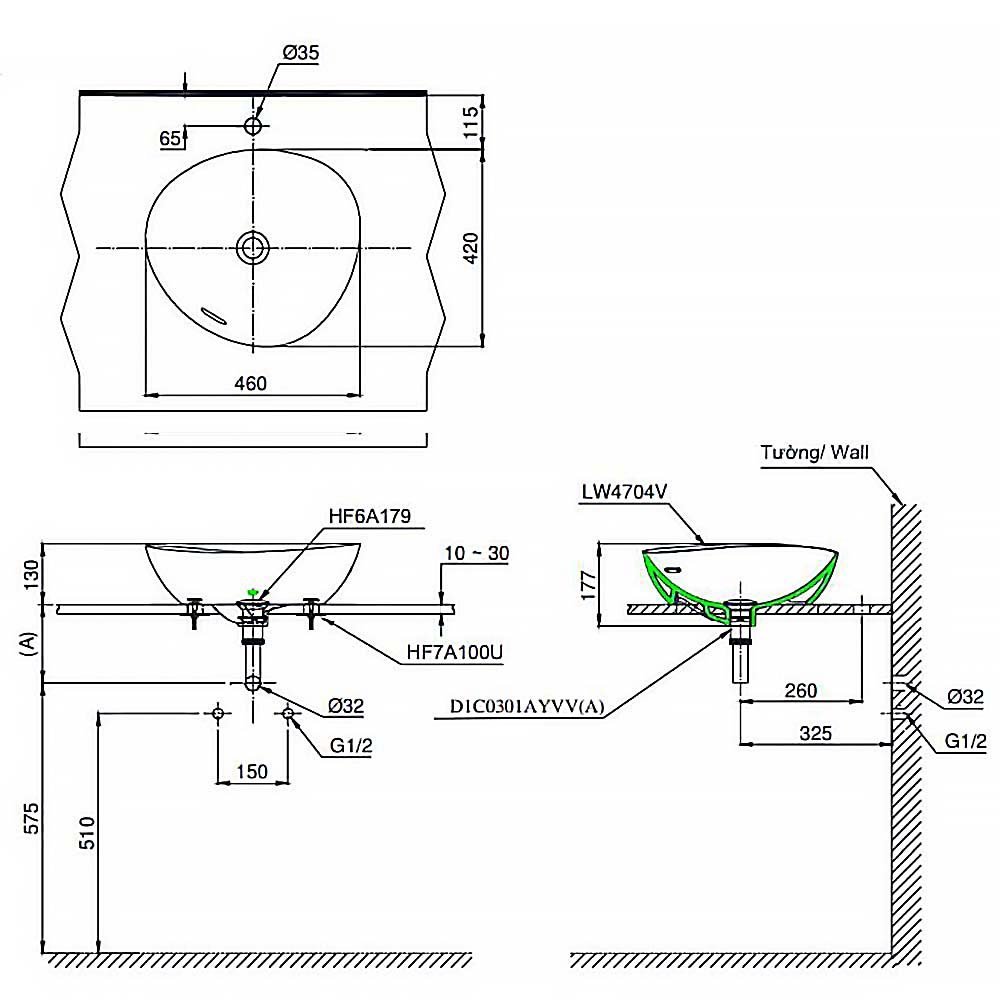 ♦ Chất liệu: Linear Ceram, Viền chậu siêu mỏng 4mm (Bao gồm bộ xả)