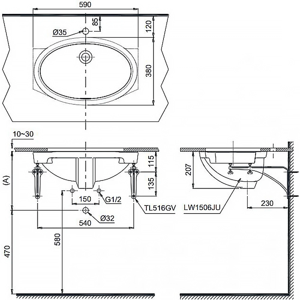 Chậu rửa mặt lavabo TOTO LW1506V#XW/ TL516GV âm bàn, kèm giá đỡ TL516GV