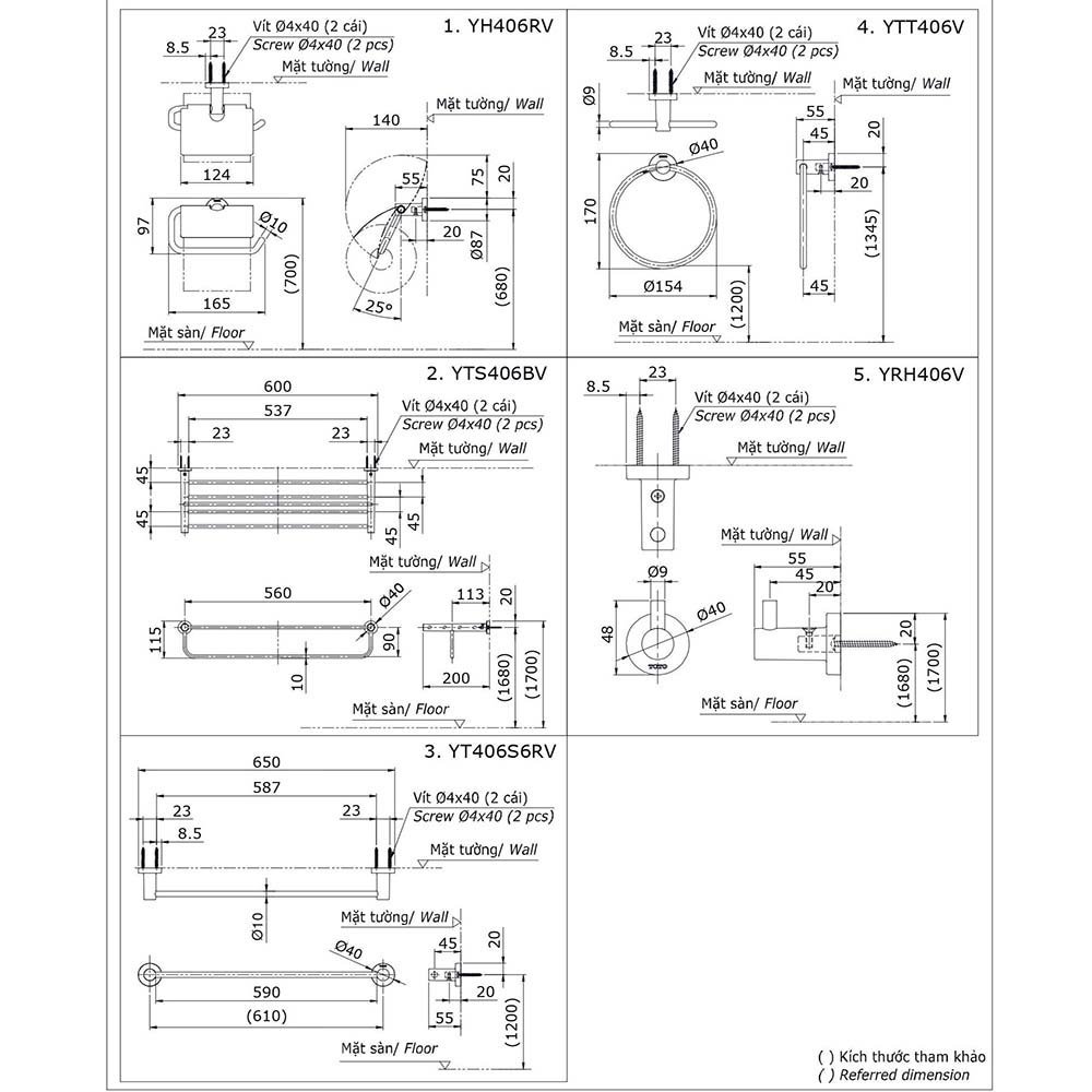 Combo phụ kiện TOTO YS406N5V (5 sản phẩm dòng L tròn)