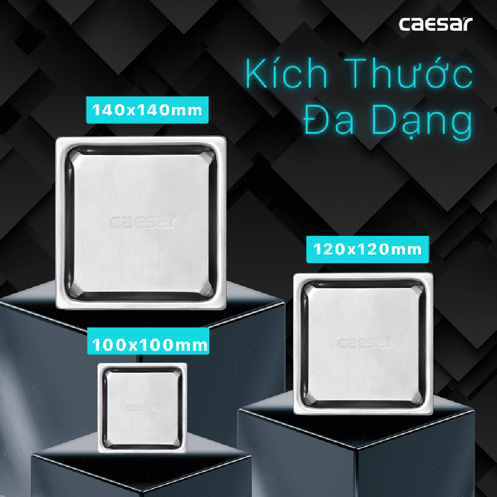 Phễu thoát sàn CAESAR ST1414L vuông 140x140 mm (Ø90)