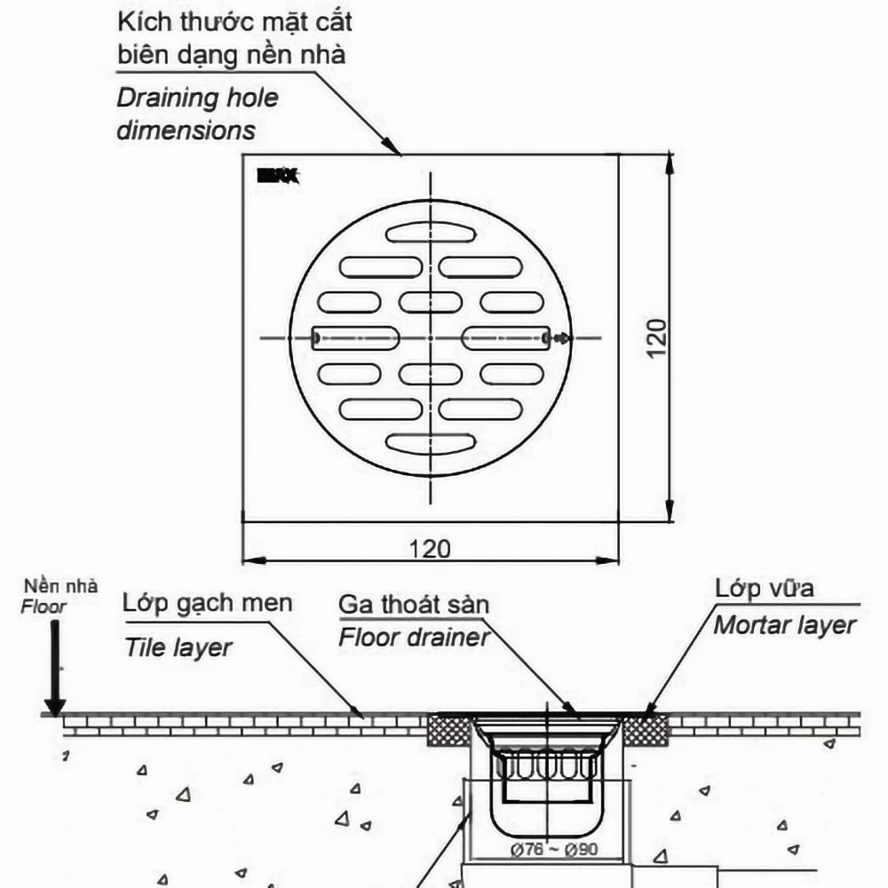 Hãy là người đầu tiên nhận xét “Phễu thoát sàn INAX FDV-12 (FDV12) vuông 120x120mm, (Ø90)” Hủy