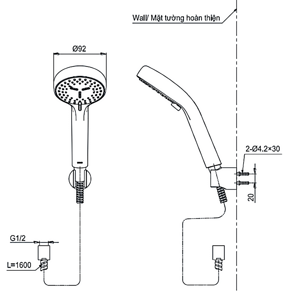 Vòi sen tắm TOTO TBS02302V/ TBW07012A nóng lạnh