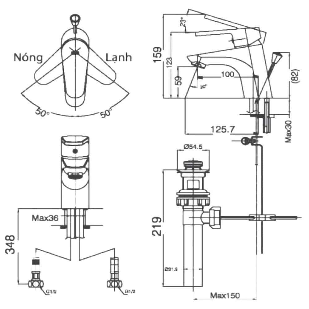 | Chiều cao vòi | 159 mm |