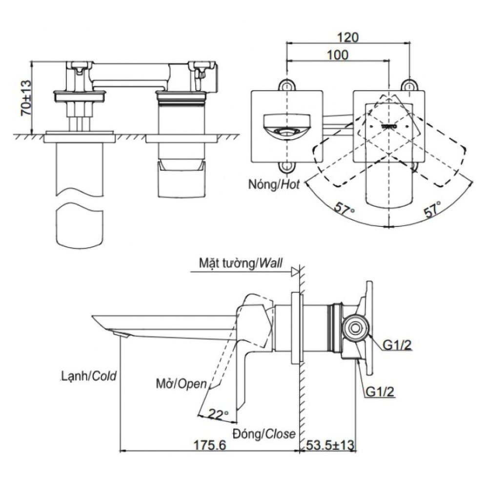 ♦ Kích cỡ: 175.6mm (Từ tâm xả nước đến tường)