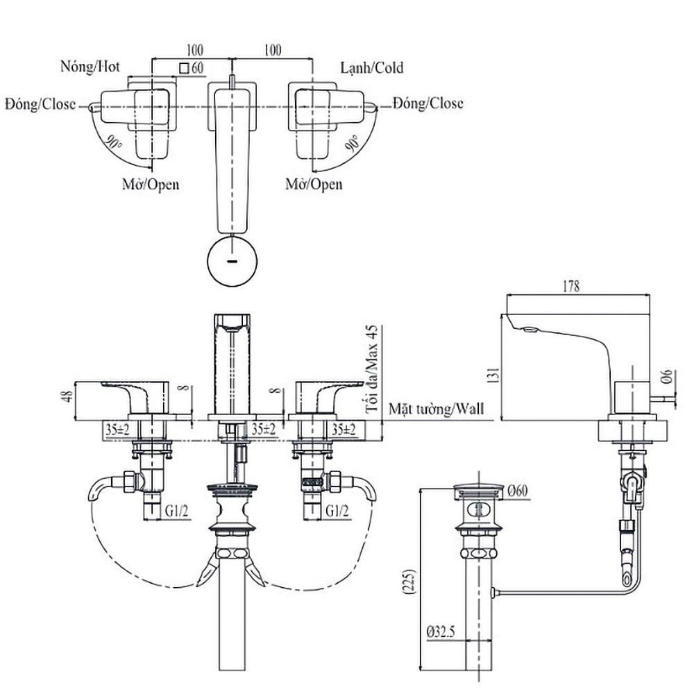 (Không bao gồm bộ xả, không gồm ống thải chữ P