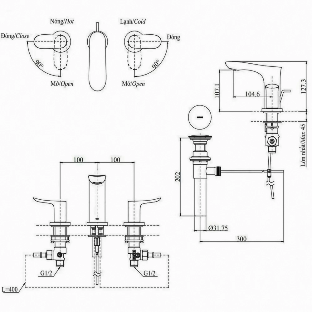 (Bao gồm bộ xả, không gồm ống thải chữ P)