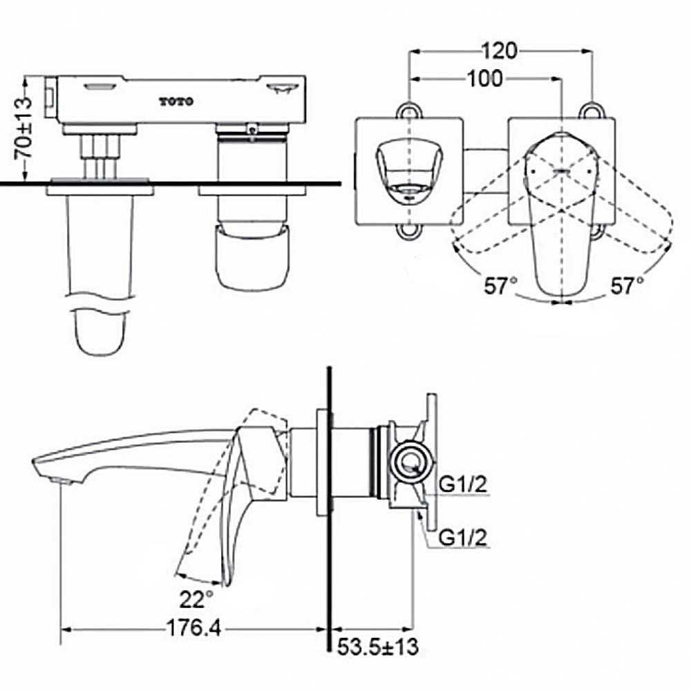 Vòi Lavabo TOTO TLG09307BB#MBL nóng lạnh, gắn tường, dòng GM (2 lỗ), màu đen mờ