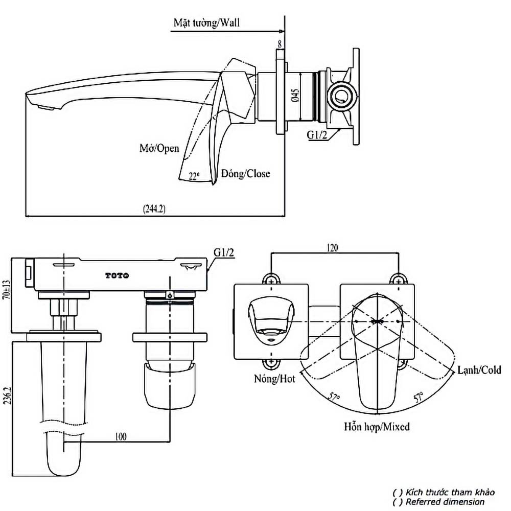 ♦ Kích cỡ: 244.2 mm (Từ tâm xả nước đến tường)