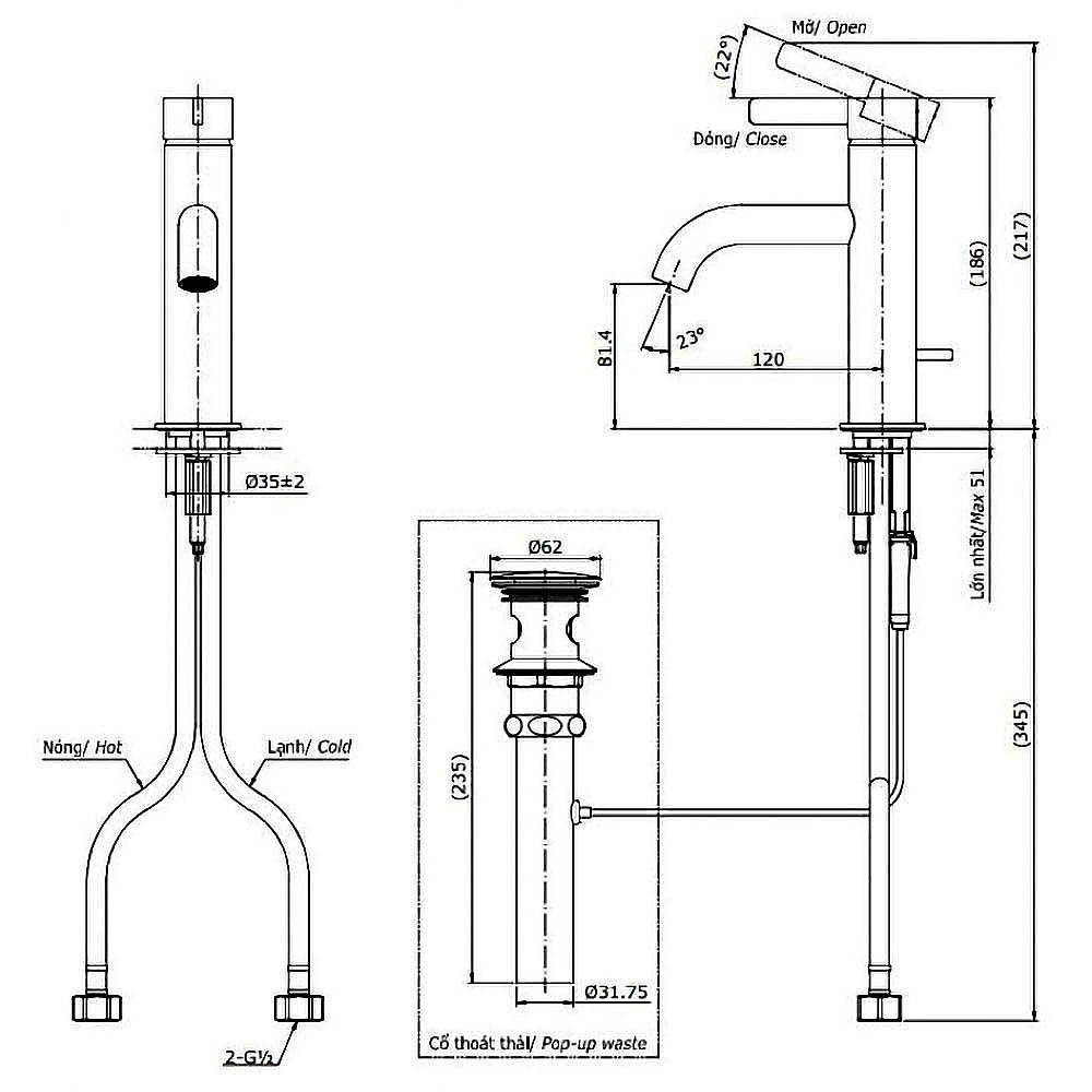 (Bao gồm bộ xả, không gồm ống thải chữ P)