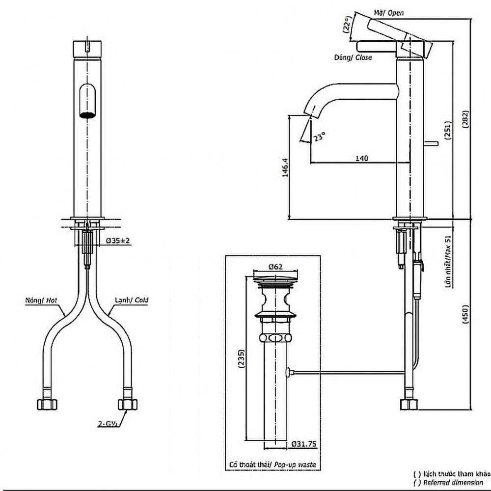(Bao gồm bộ xả, không gồm ống thải chữ P)