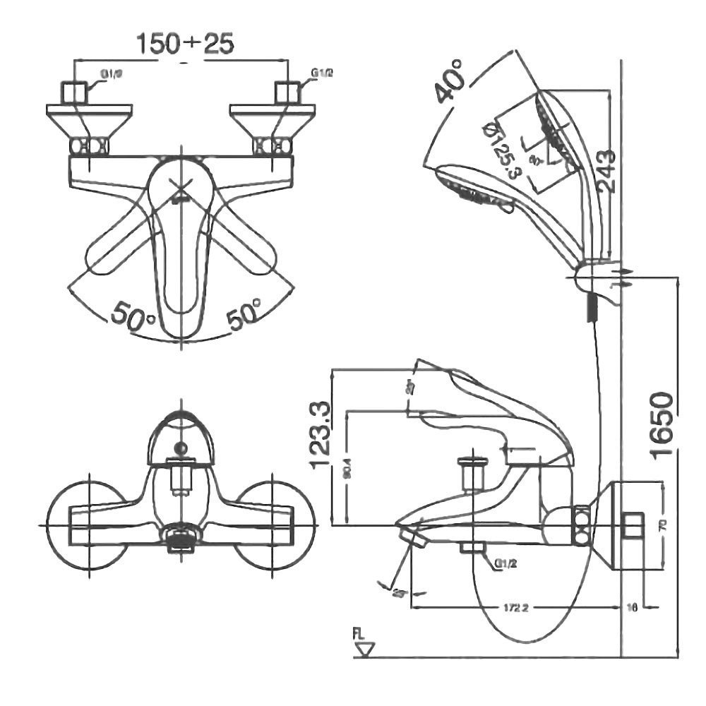 Vòi sen tắm INAX BFV-223S (BFV223S) nóng lạnh, tay sen 3C massage 5 chế độ
