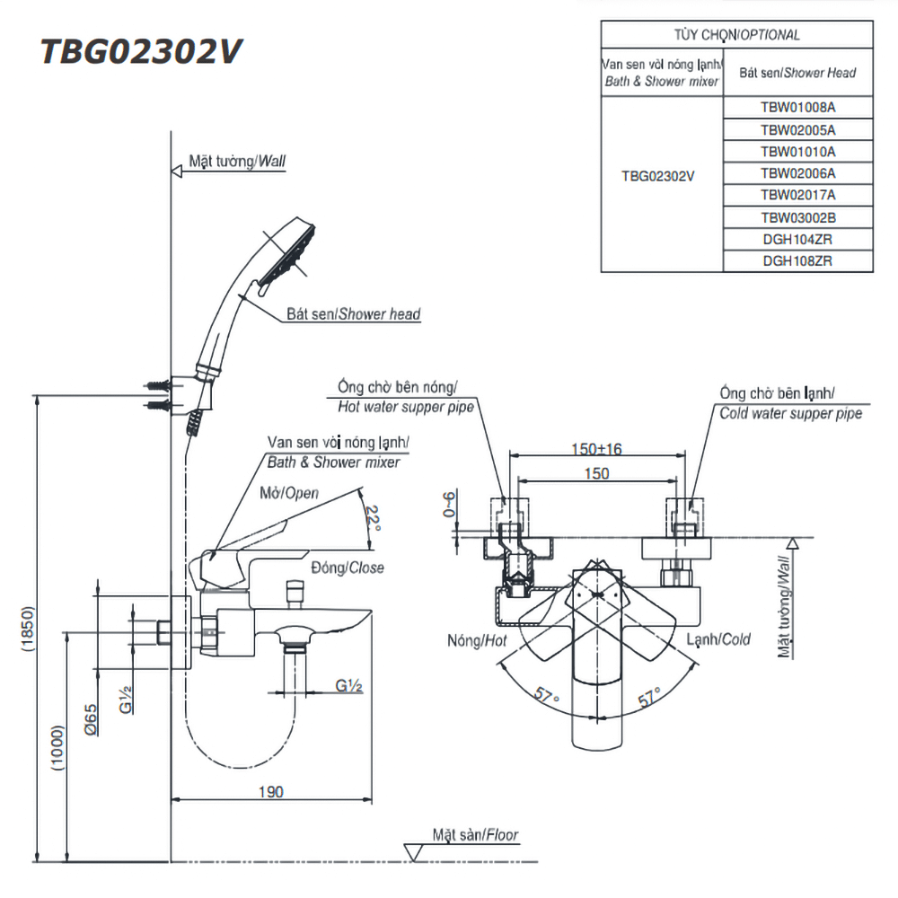 | Khoảng cách lỗ chờ | 150±15 mm |