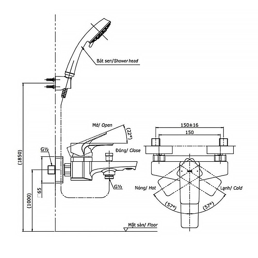 Vòi sen tắm TOTO TBG07302VA/ TBW02017A nóng lạnh